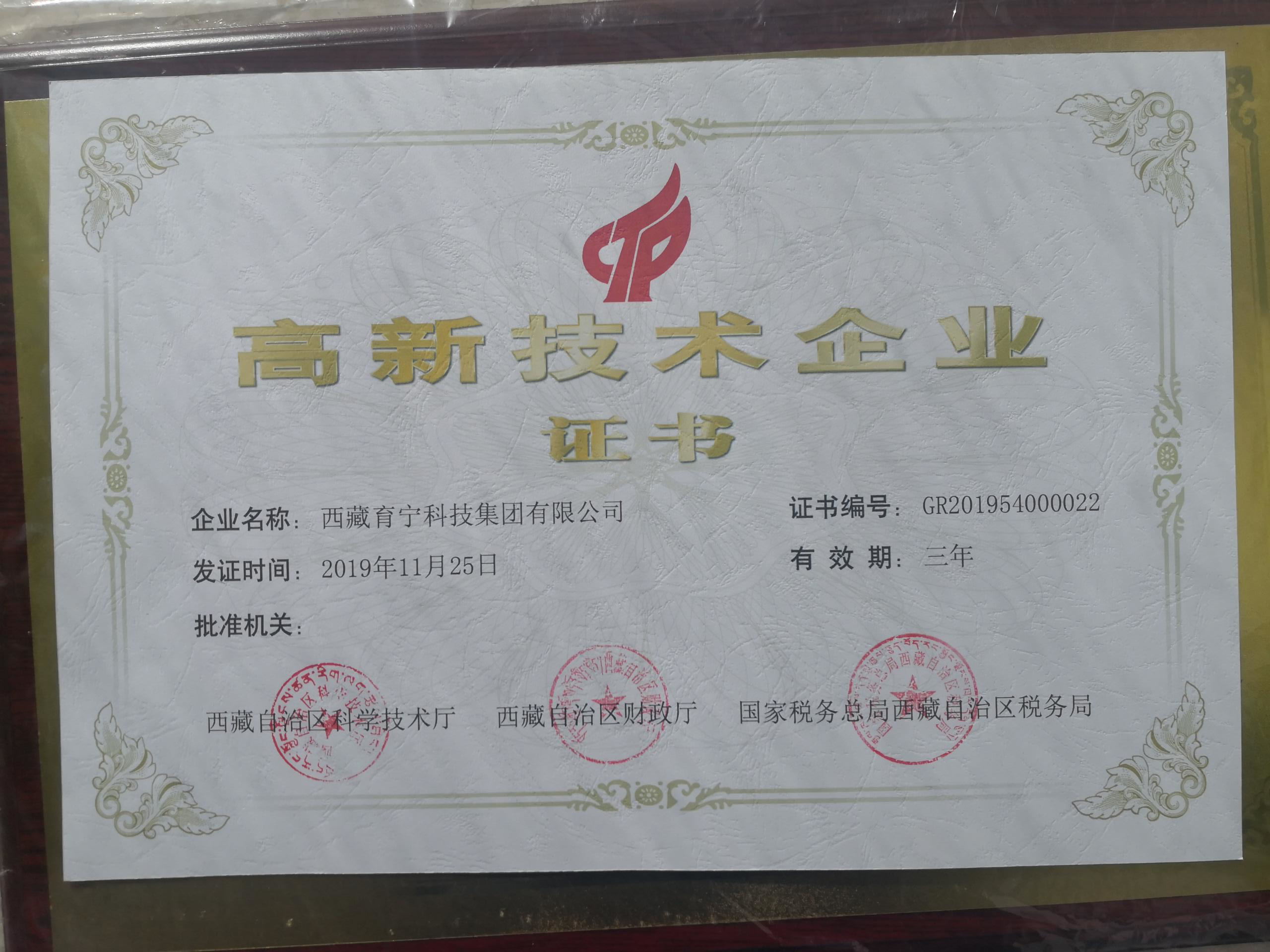获此殊荣,是社会各界对西藏育宁科技集团有限公司自成立以来发展成绩的支持和肯定,也是社会各界以及广大客户的支持和厚爱,“国家高新技术企业”不仅是一种荣誉,更是一种责任,必将进一步激发公司全员科技创新的热情,进一步增强以自主研发为核心的综合创新能力。西藏育宁科技集团有限公司将以此为契机和动力,努力实现跨越式发展。