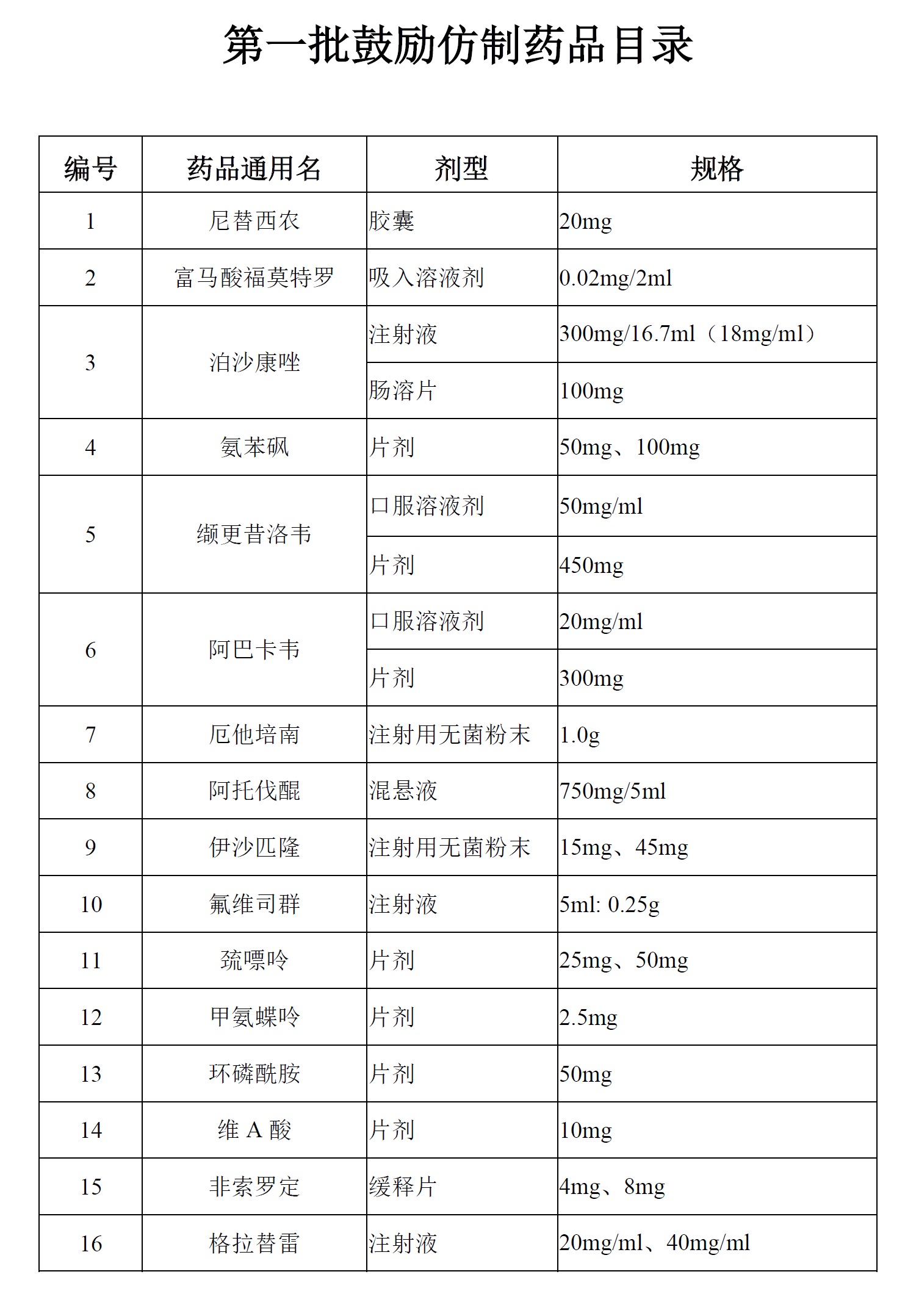 第一批鼓励仿制药品目录公布 33项药品入选
