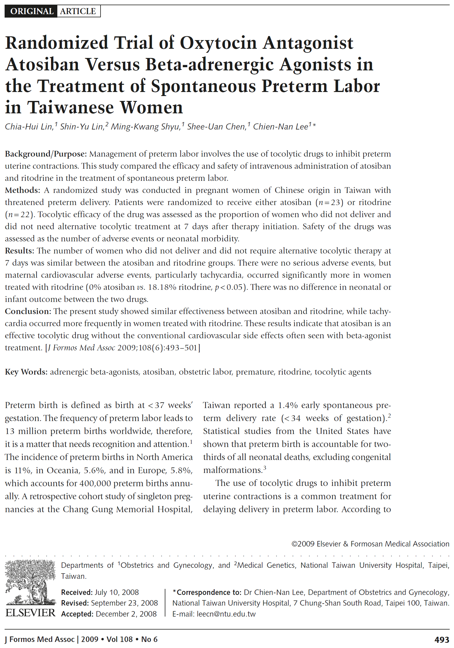 育宁视野丨催产素拮抗剂阿托西班对比β-肾上腺素激动剂治疗台湾妇女自发性早产的随机试验
