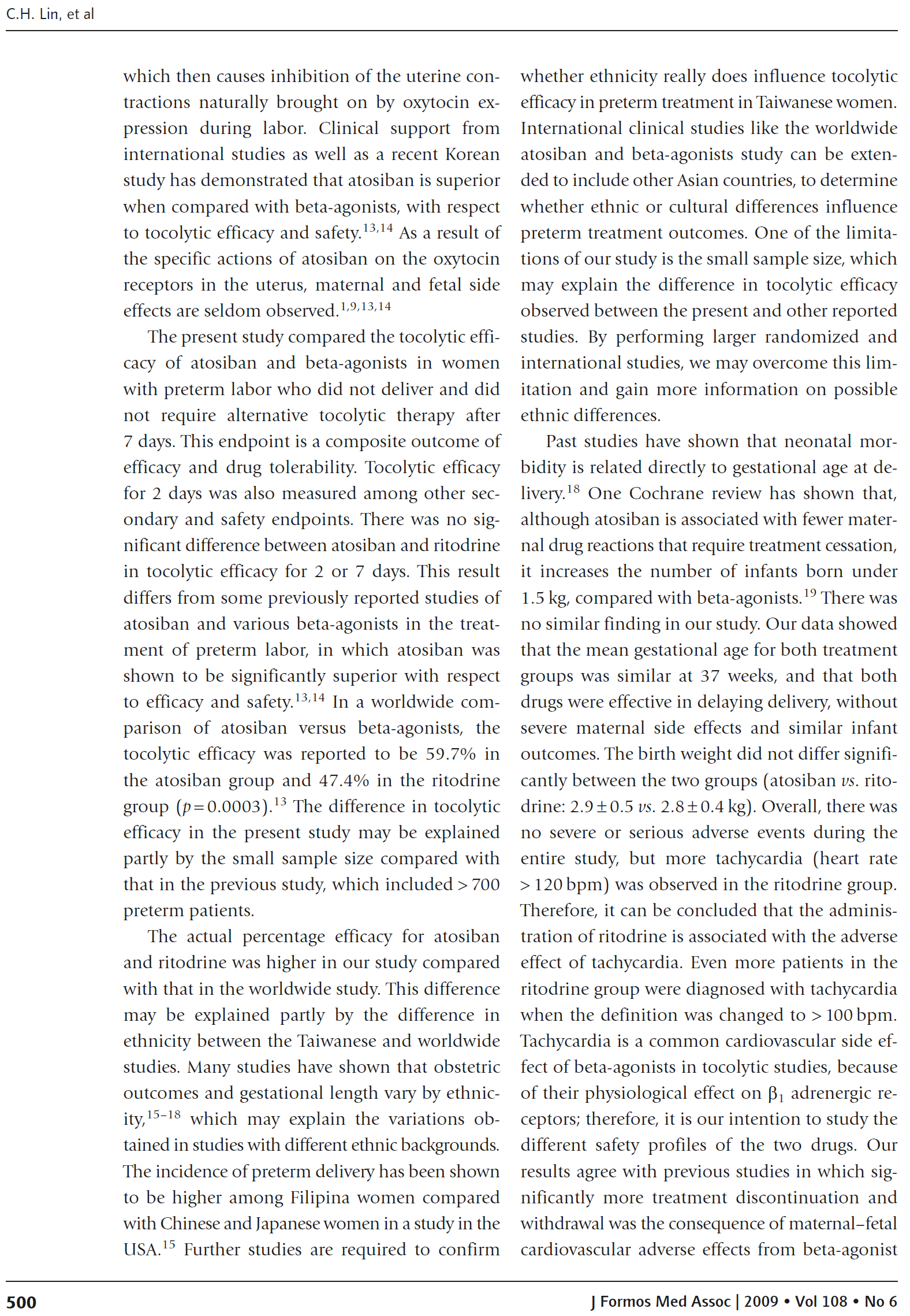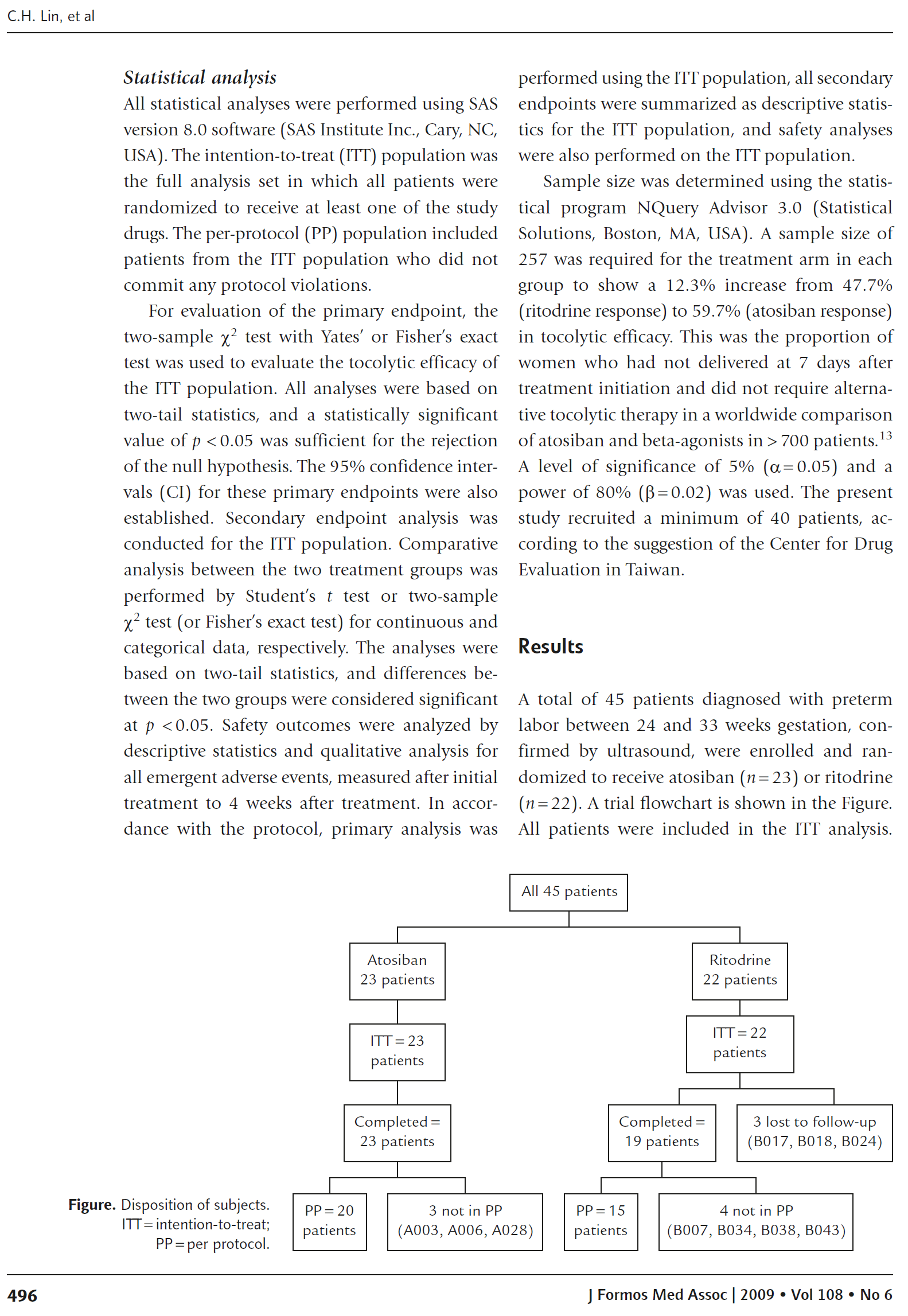 方法:对台湾地区孕妇进行早产随机研究。患者随机接受阿托西班(23例)和利托君(22例)治疗。药物的抗宫缩疗效是根据在治疗开始后7天内没有分娩和不需要替代抗宫缩治疗的妇女的比例来评估的。药物的安全性通过不良事件数或新生儿发病率来评估。