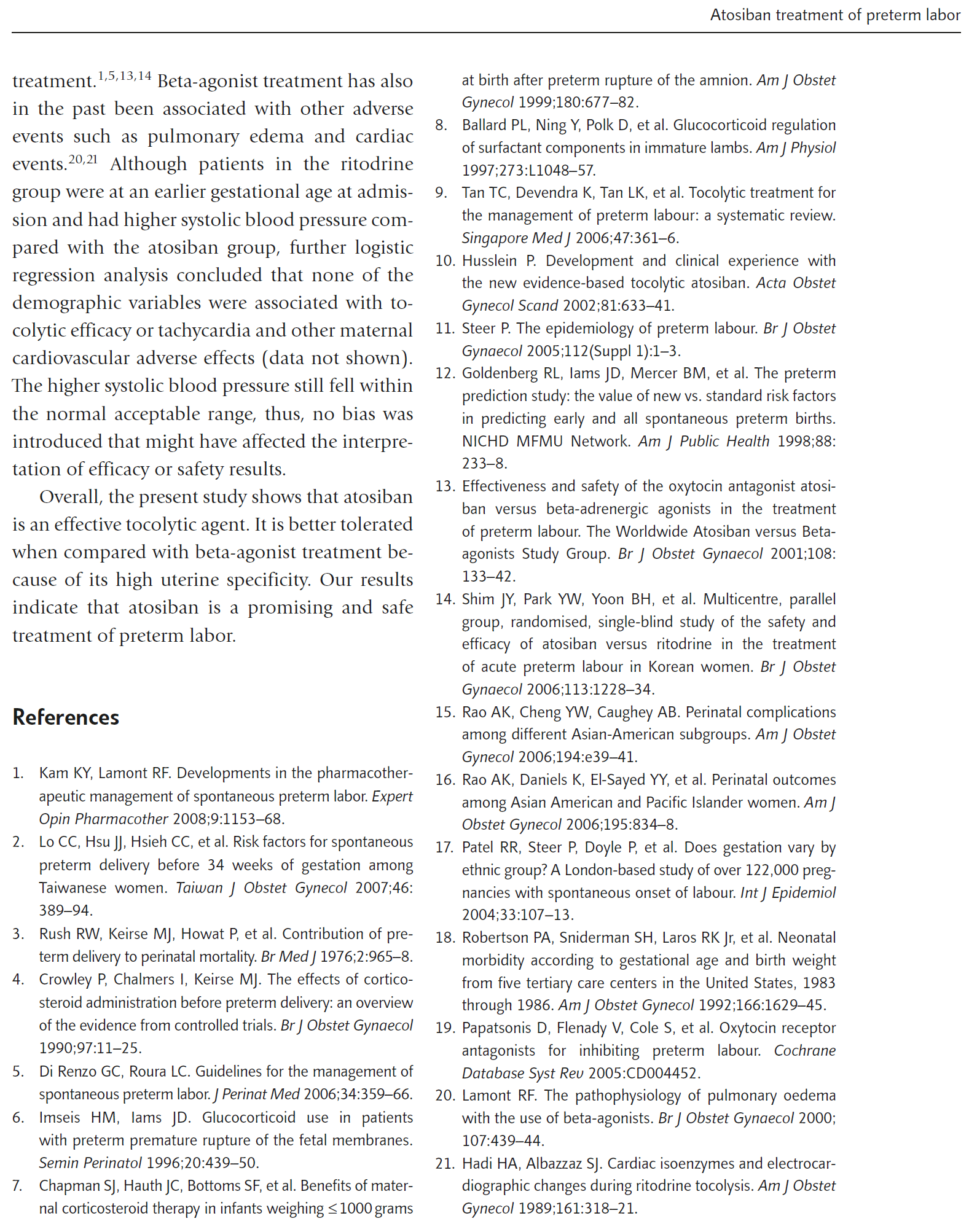 结论:目前的研究显示阿托西班和利托君的疗效相似,而在接受利托君治疗的妇女中,心动过速的发生率更高。这些结果表明,阿托西班是一种有效的保胎药,没有β受体激动剂治疗时常见的心血管副作用。