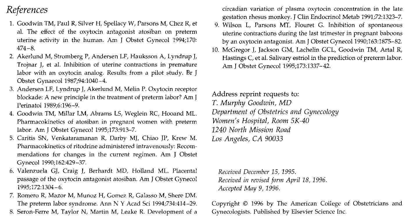 结论:推注法可增强阿托西班对早产中子宫活动的影响,与利托君的作用相似,但副作用比利托君小(Obstet Gynecol 1996:88:331-6)。