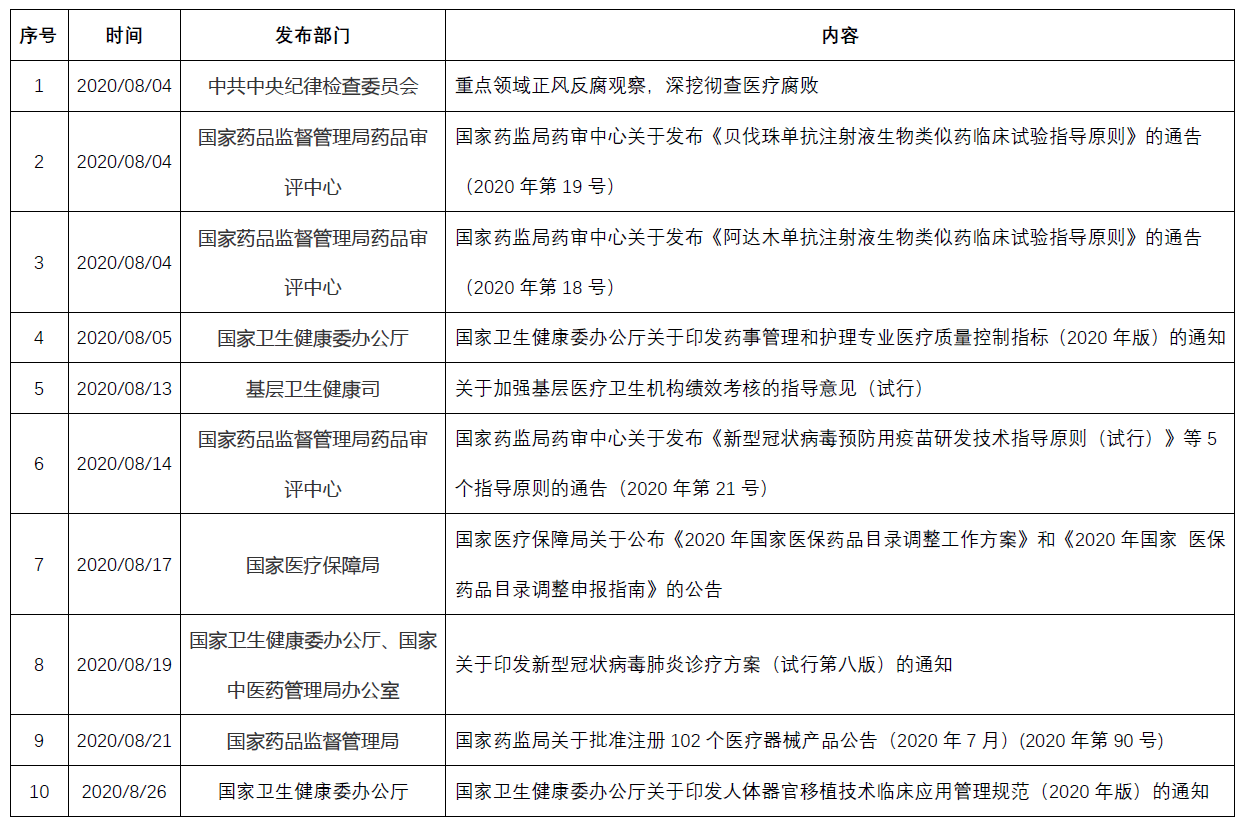 育宁焦点丨2020年8月医药政策汇总