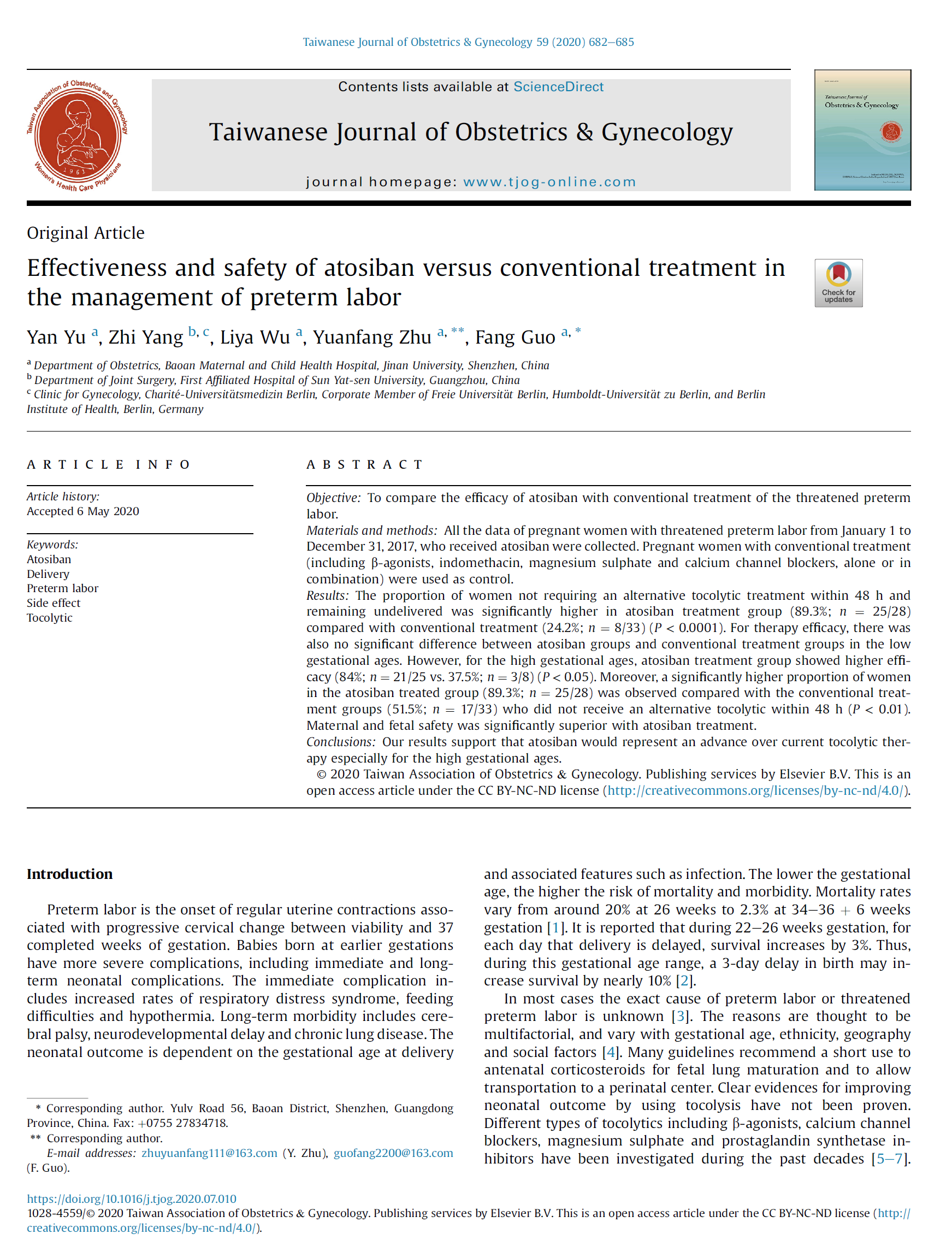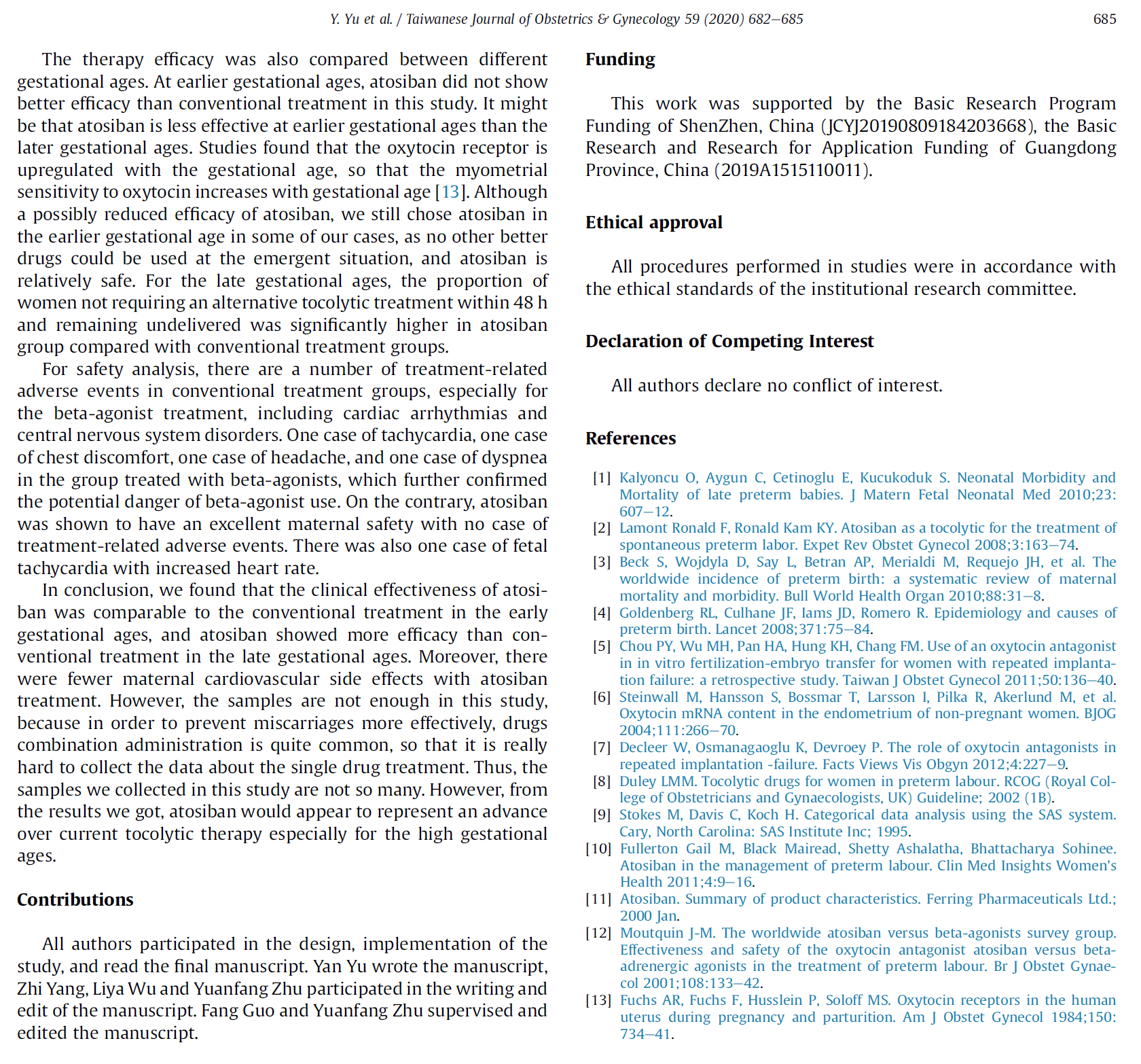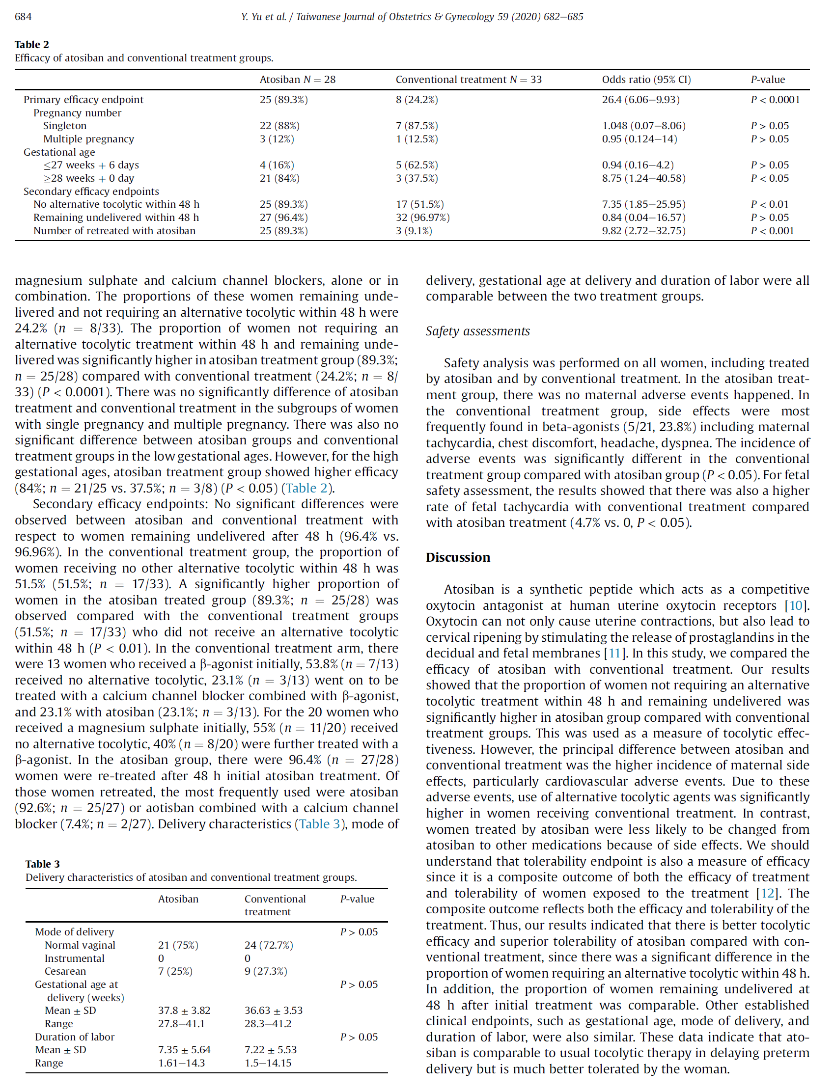 结论:我们的结果显示,阿托西班相较于目前的抗宫缩治疗来说,它代表着一种进步,以高胎龄产妇最为典型。