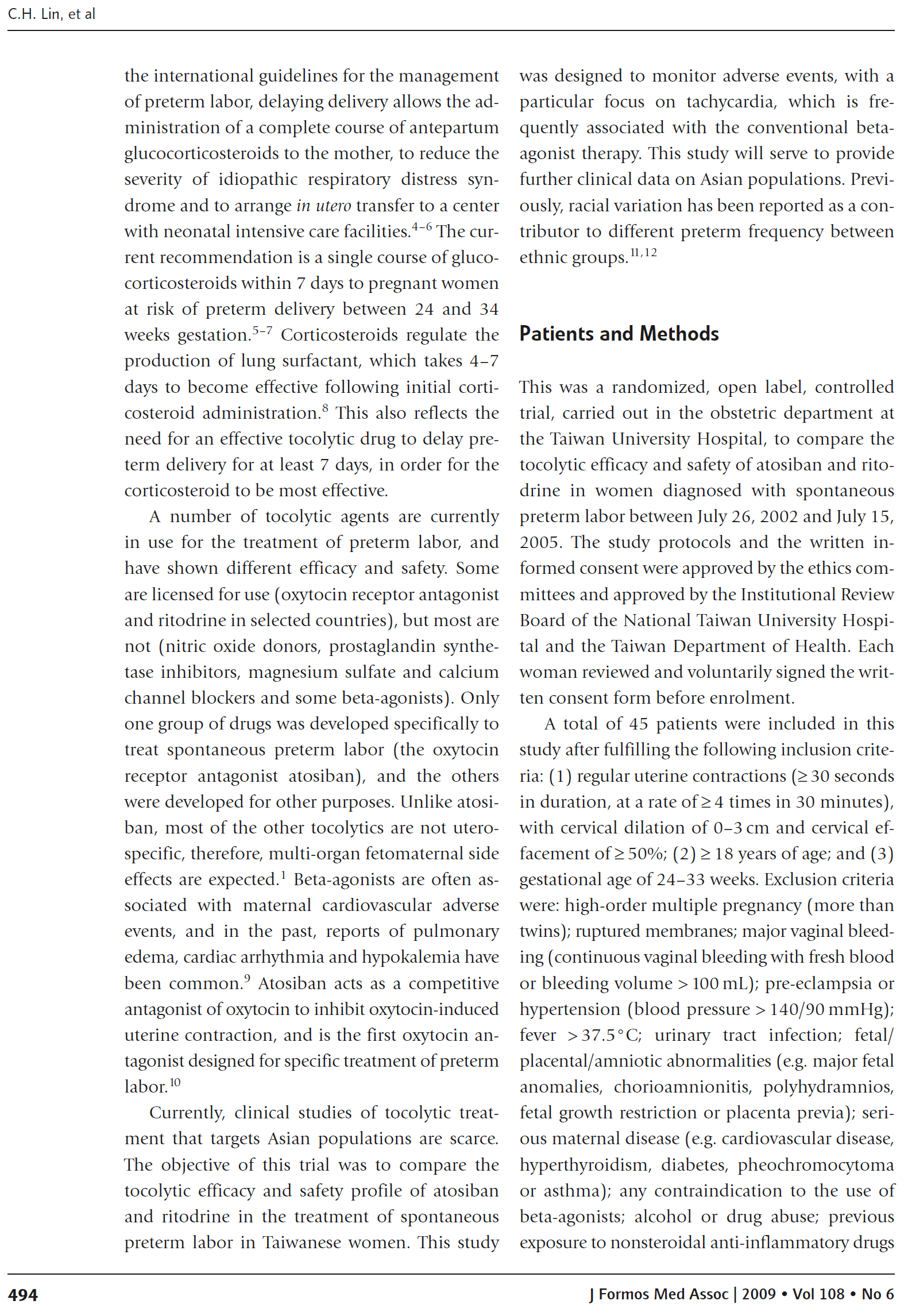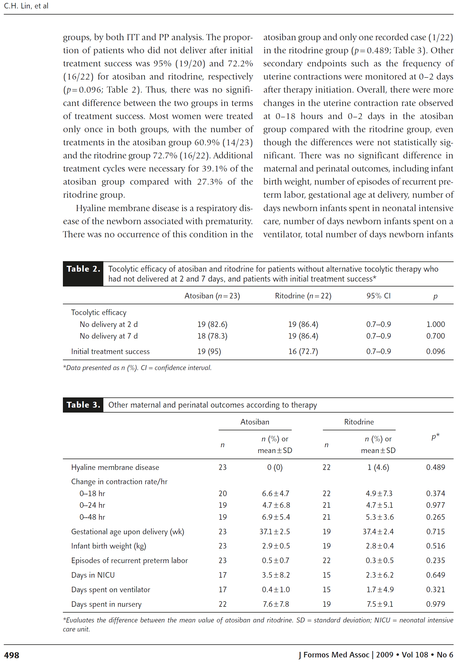 方法:对台湾地区孕妇进行早产随机研究。患者随机接受阿托西班(23例)和利托君(22例)治疗。药物的抗宫缩疗效是根据在治疗开始后7天内没有分娩和不需要替代抗宫缩治疗的妇女的比例来评估的。药物的安全性通过不良事件数或新生儿发病率来评估。