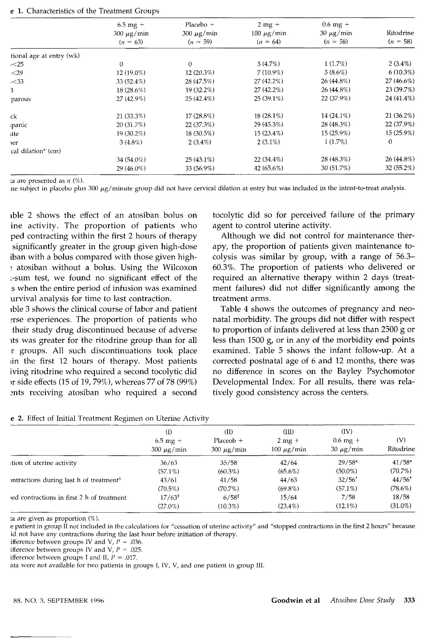 结果:最低剂量的阿托西班(0.6毫克+30微克/分钟)在停止收缩和治疗最后一小时内每小时收缩4次或更少方面明显不如利托君有效。其他阿托西班方案与利托君相当,除了副作用的的停药率。大剂量阿托西班的推注治疗导致在治疗的前2小时内停止收缩的患者比例(63例中的17例)明显高于未接受注射的患者(58例中的6例,P=0.017)。由于副作用,244名阿托西班患者中的1名患者和58名利托君患者中的15名停止使用研究药物。